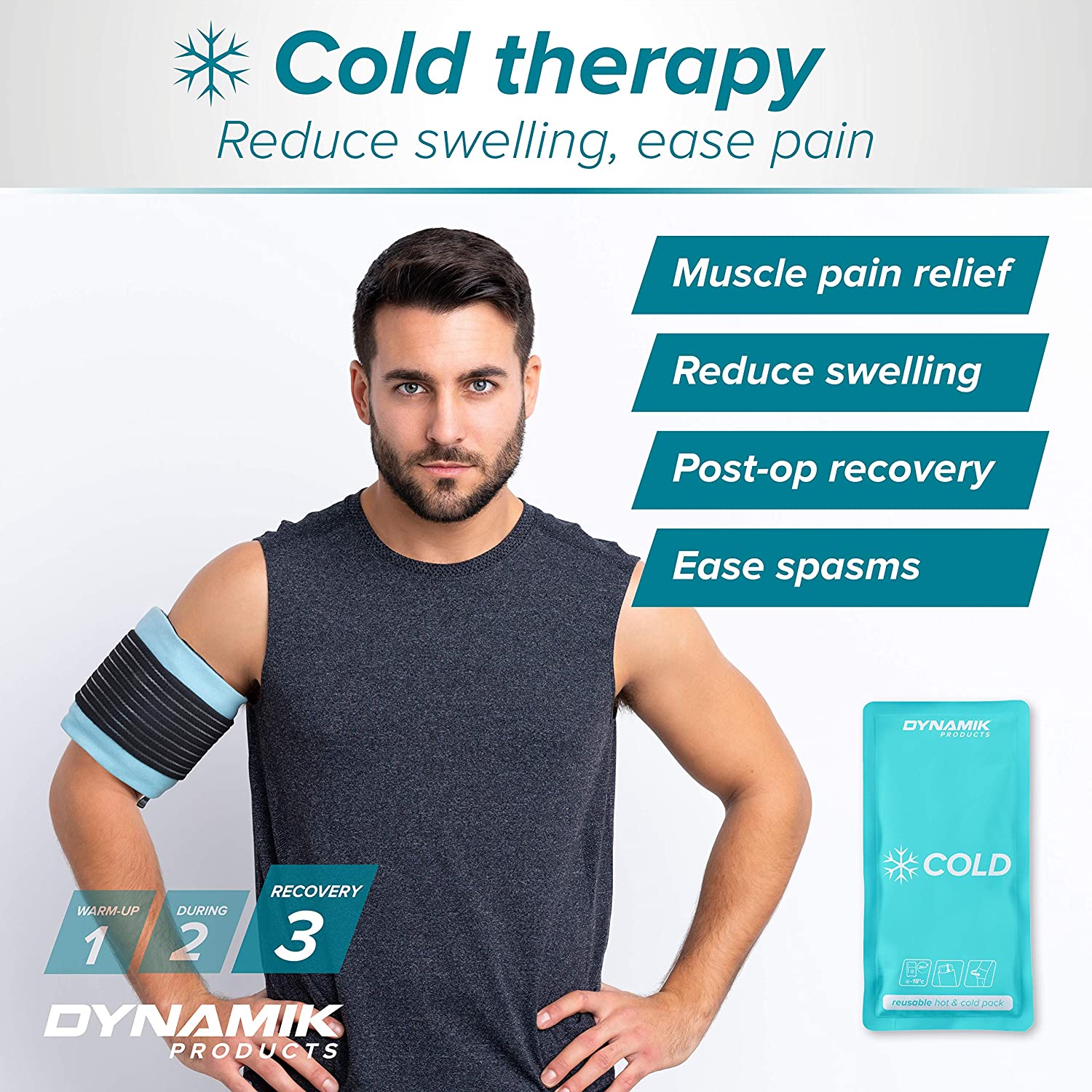 Many injury sufferers continue to struggle with the outdated bag of frozen peas on their injured body. Dynamik's hot/cold packs have many advantages: